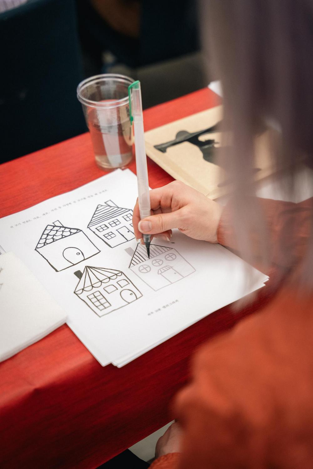 Do you know ''Korean calligraphy''? Hangul is the name of the Korean alphabet. On the other hand, Calligraphy means ``hand-drawn characters.", which values individual expression and coincidence, is not a mechanical expression, but a beautiful and unique handwriting. In the workshop you have a chance to express Korean style and emotions in letters.